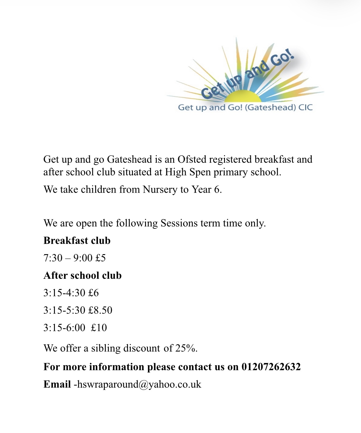 Get up and Go! is an Ofsted registered out of school club, based in the annex at High Spen Primary School.